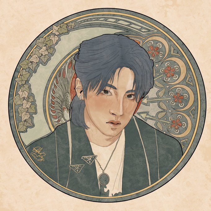 PENTAGON NOUVEAU Pentagon nouveau version Art Nouveau inspired portraits I can't wait anymoreee (1/?) #pentagonfanart #펜타곤 #PENTAGON #INVITE_U #Feelin_Like #digitalart #fanart #kpop #artnouveau @cube_ptg #hongseok #wooseok #kino #yuto #yanan #yeoone #shinwon #jinho #hui