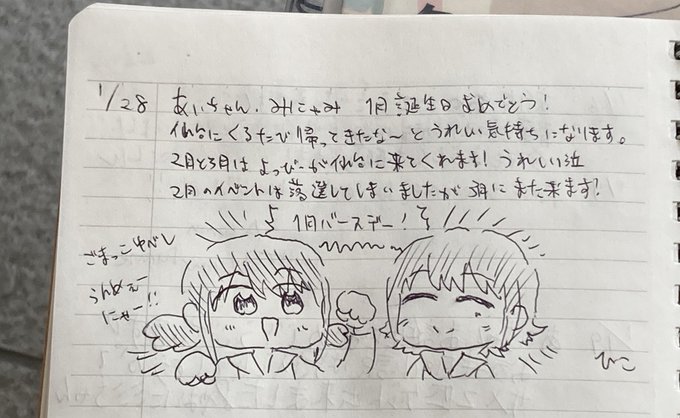 田中美海さん、片山実波さん、お誕生日おめでとうございます。🎂🍫 ファンを照らしてくれる太陽のような存在のみにゃみには日々感謝です☀ 今年は寅年、みにゃみの年。エネルギッシュにぶちかましてください!💪 応援しています!!🐯 #田中美海生誕祭2022 #片山実波生誕祭2022 #WUG_drawing
