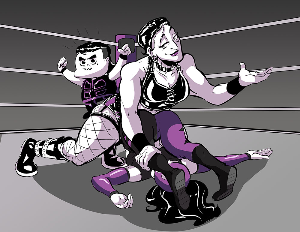I elected to draw the dynamic of @RheaRipley_WWE and @DomMysterio35 . I think this captures the energy. #WWE #TheJudgmentDay #ArtistOnTwitter