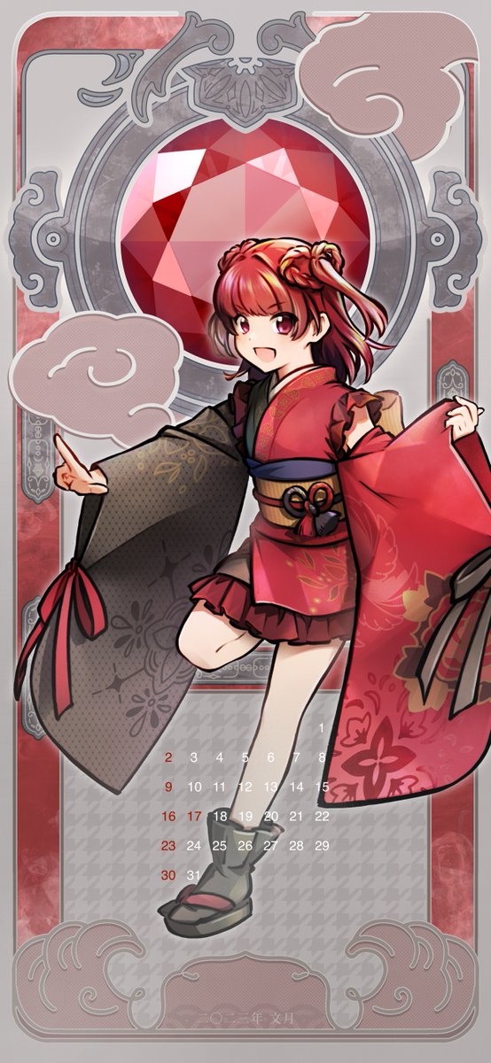 【7月カレンダー(壁紙配布)】 coogee.fanbox.cc/posts/6247893 和と宝石をモチーフにした壁紙カレンダーを描きました。2023年7月は「ルビー(紅玉)」です!どうぞお使いください🔴 #illustration #wallpapers #壁紙 #カレンダー