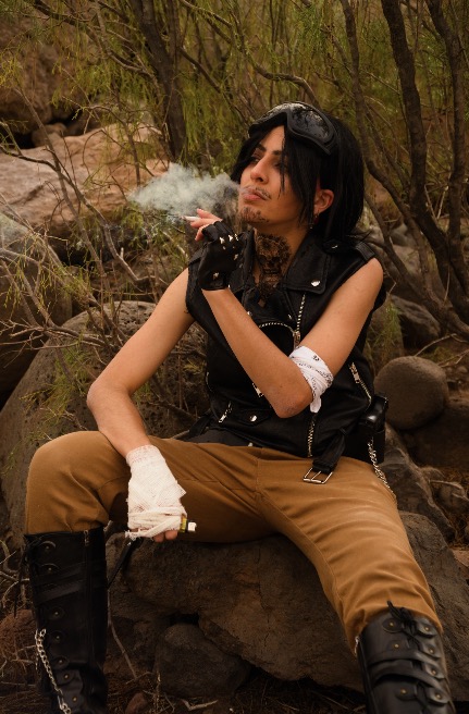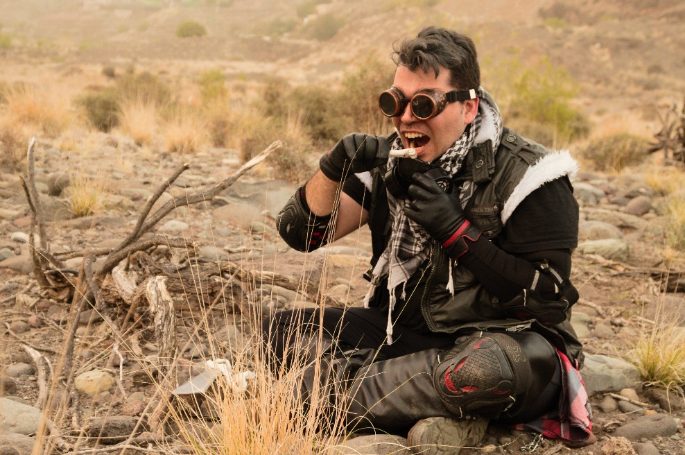 A Ceirán le gusta tomarse las cosas con calma. Fumarse su cigarrillo, beber el tequila de su petaca, o torturar a sus objetivos de venganza. #Wanderland #postapocalyptic #scifi #LARP #roleplaying #OC #cosplay