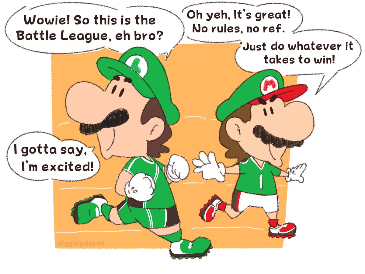 Beating the system #MarioStrikersBattleLeague #SuperMario #Luigi #Wario #webcomic #Nintendo #doodle