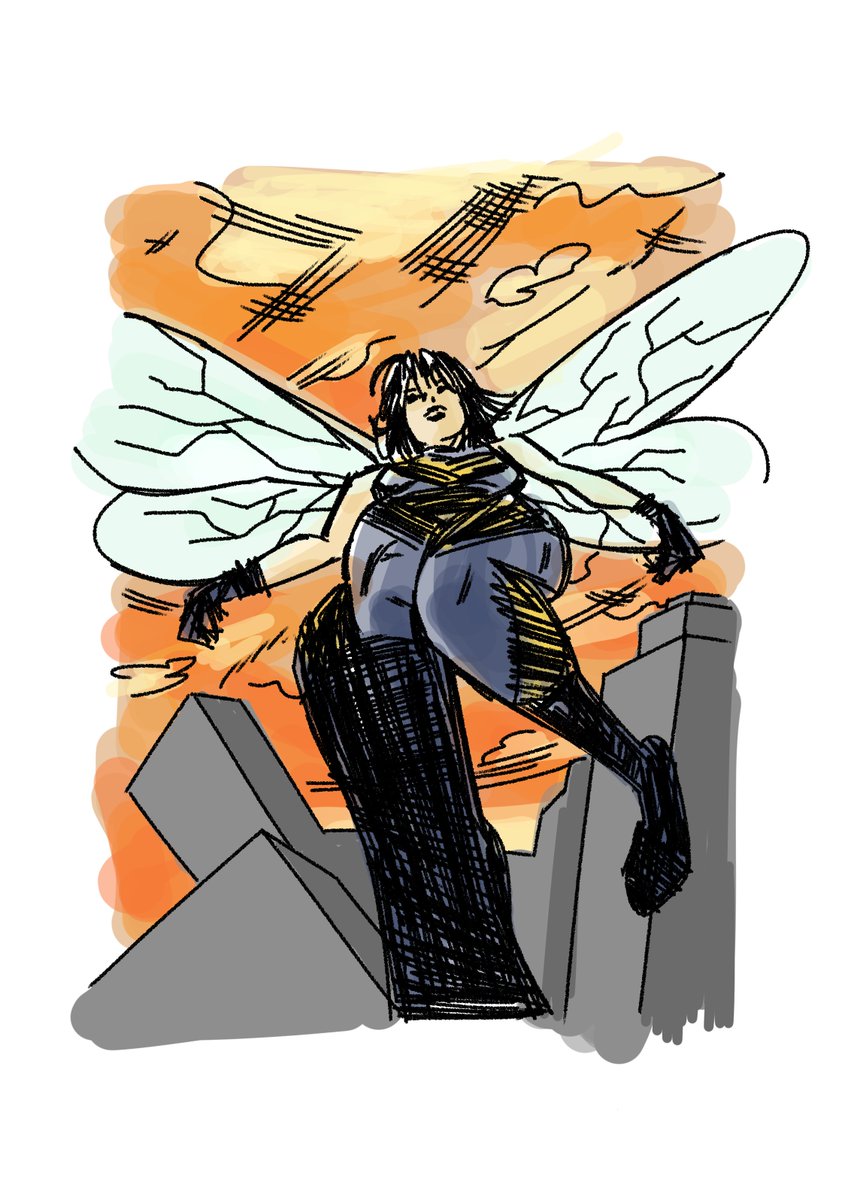 Wasp, Marvel Ultimates inspired version. Finally done with these, was cool drawing these characters otherwise I probably wouldn't draw. Sleepy sleepy snooze time..... #wasp #marvel #sixfanarts