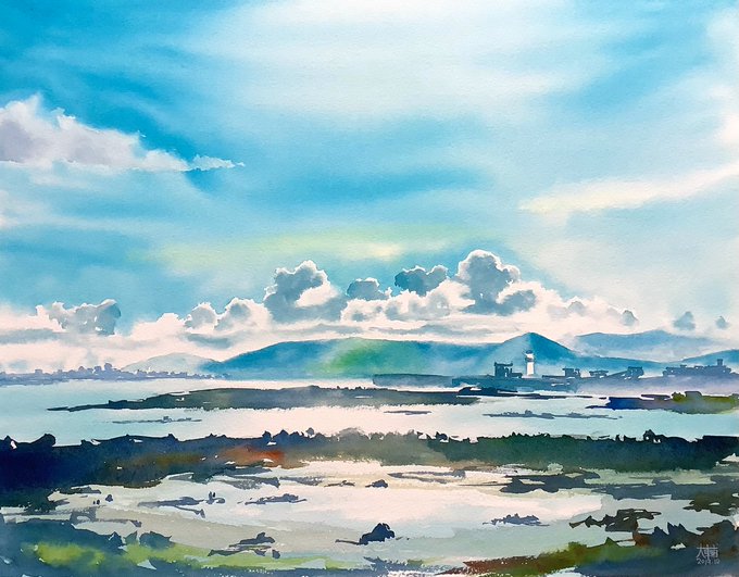 "瑞雲は 晴海の空を 西へゆく 光の先の 君に幸あれ" 木村尚樹先生の"Auspicious"から浮かんだ光景を、描かせて頂きました。 木村先生、寛容なご理解と御指導に感謝申し上げます。 #Watercolour #木村尚樹 #Tanka twitter.com/cogito_ergo0su…