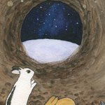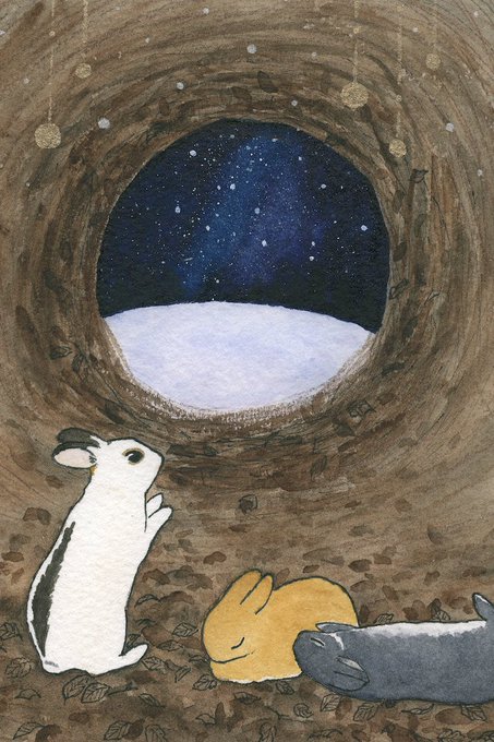 〜 On the night of a new moon 〜 Tonight's sky is a little dreary because there is no moonlight, so I will add shiny stars that I have polished. #watercolorpainting #watercolor #rabbit #bunny #透明水彩 #水彩画 #うさぎ
