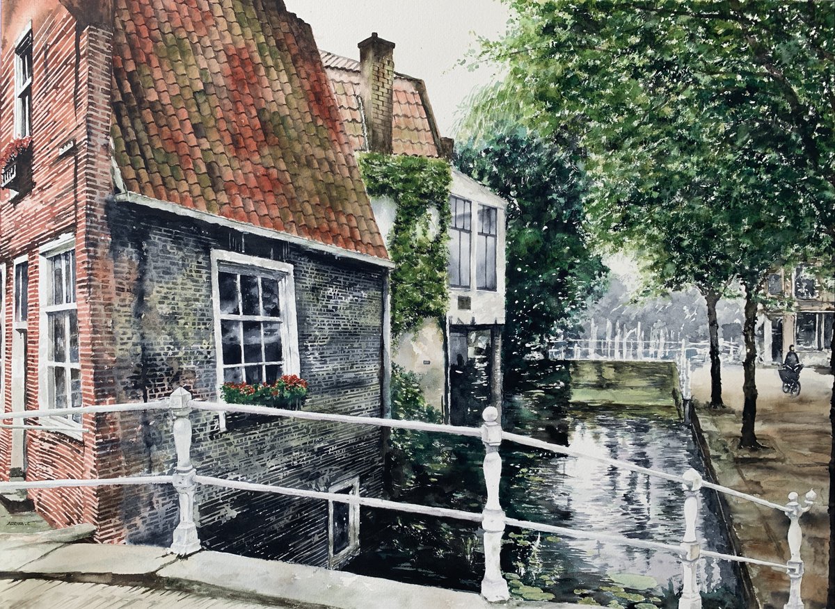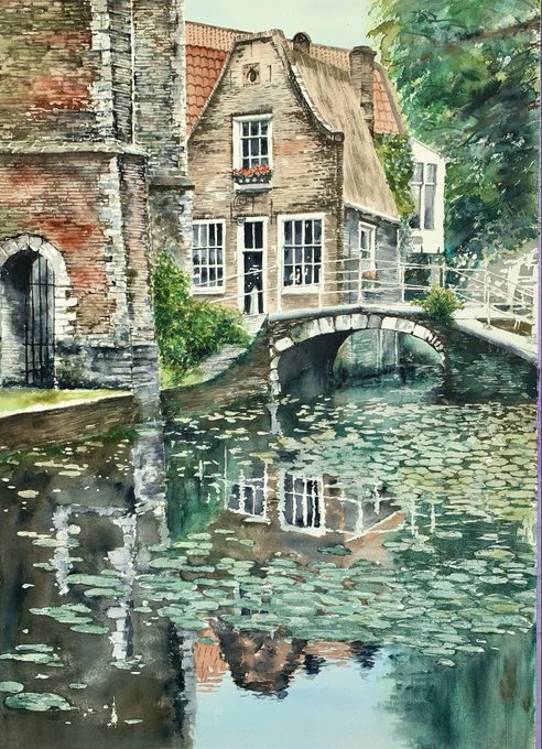 My husband - Adrien, painted two pieces watercolors replication of "Vrouvenrengt, Delft" (Original by Paul Dmoch, 1958 - Nov 15, 2015). Picture 1, 76 x 58 cm, Apr 2021; Picture 2, 58 x 76 cm, Apr 2021. #辰君草堂 #水彩 #watercolors