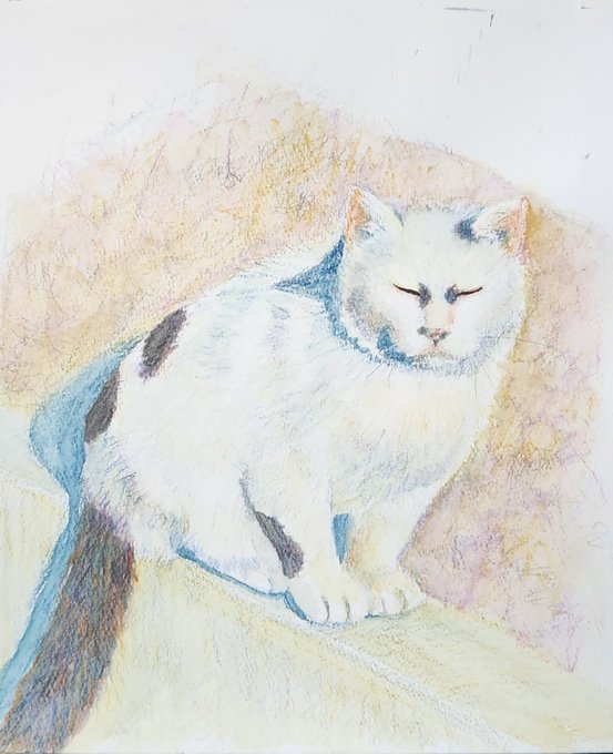 Cat on a cold day 寒い日の猫さん #watercolor on paper F3 size #watercolourpencil #watercolorpainting #watercolourpainting #cat #Caturday #水彩画 #水彩色鉛筆 #猫
