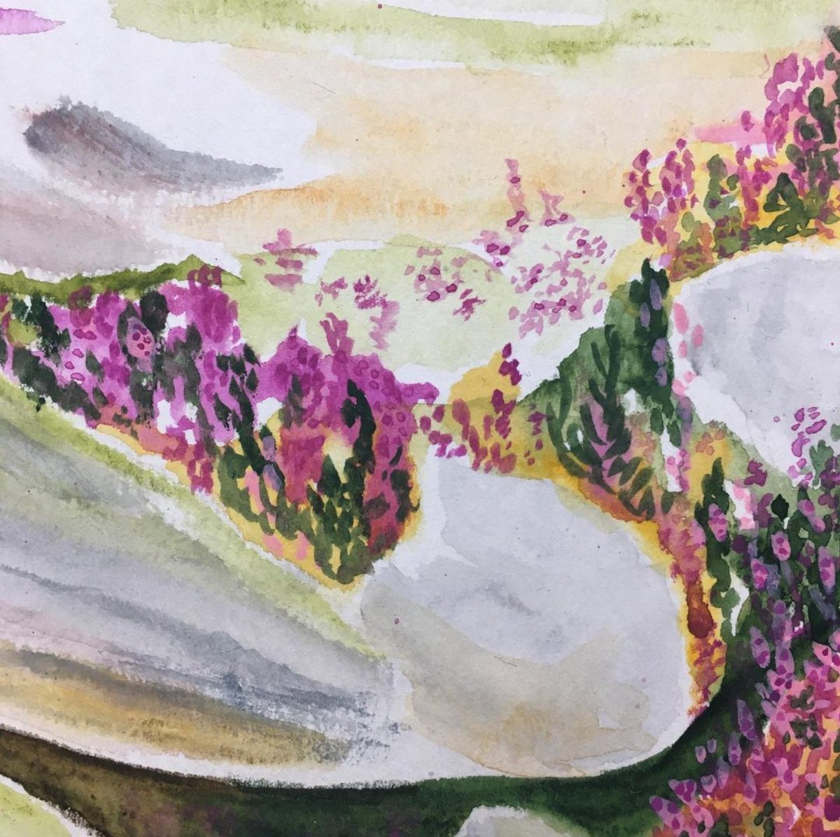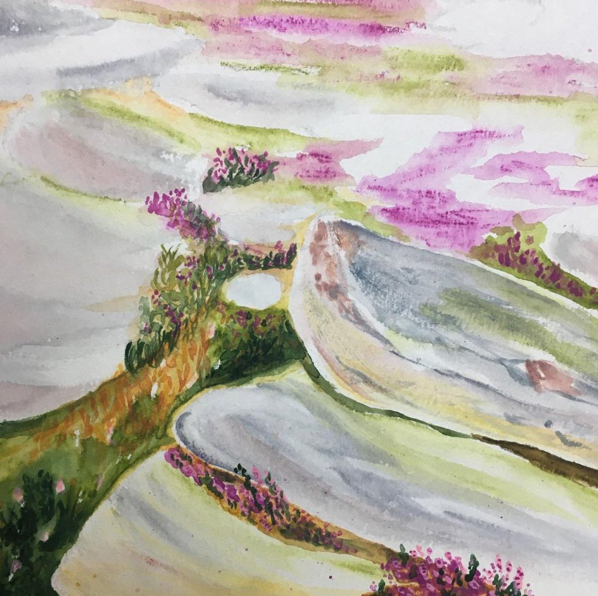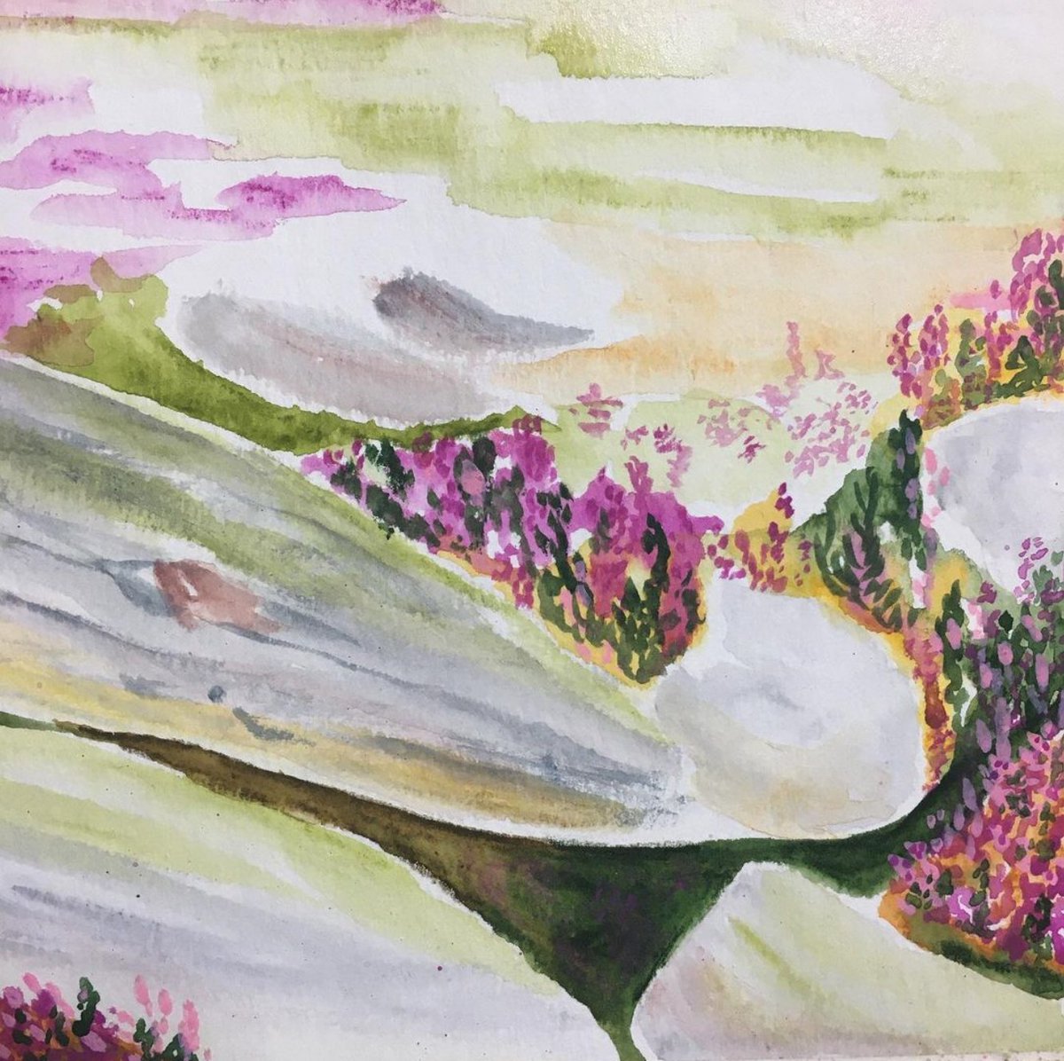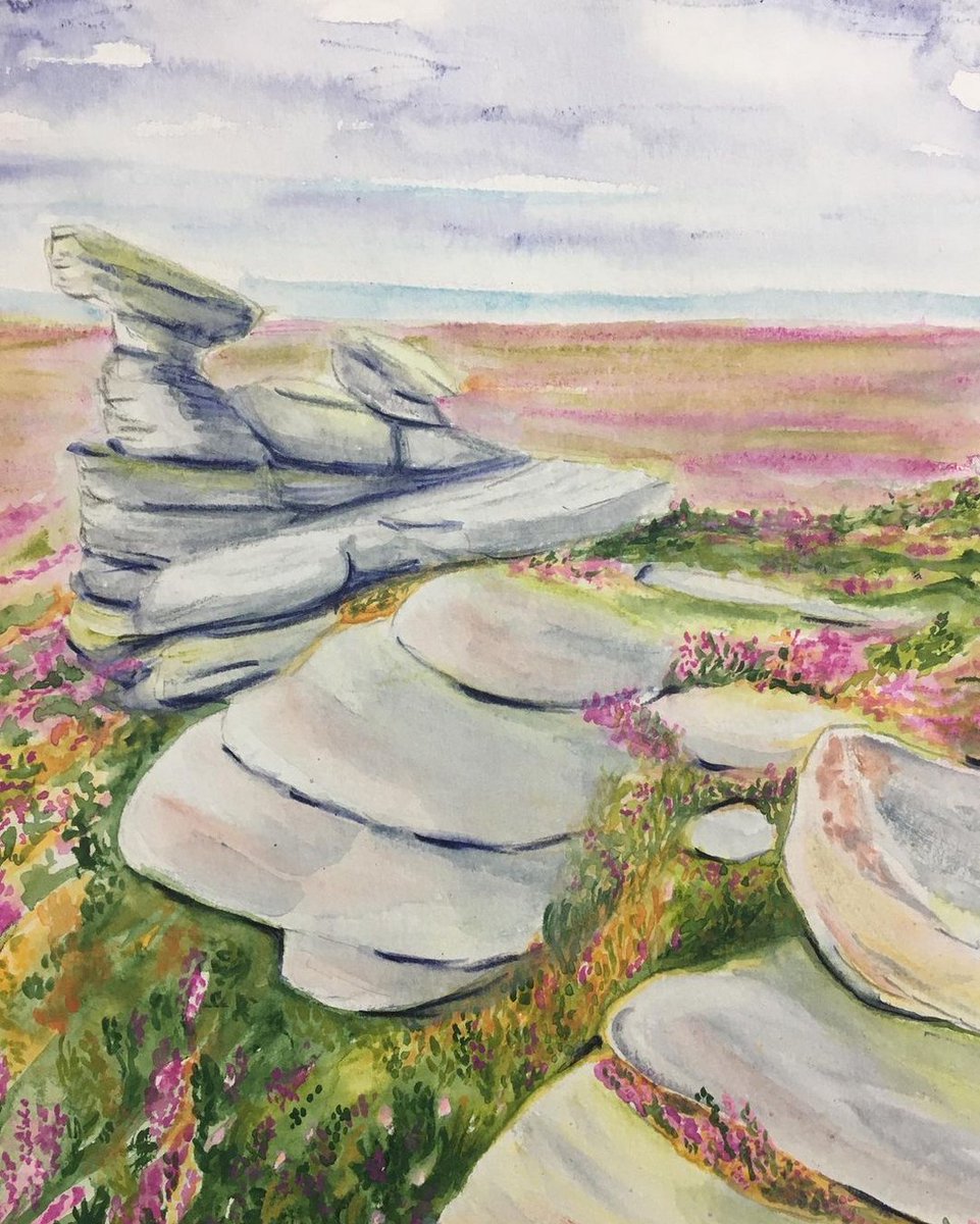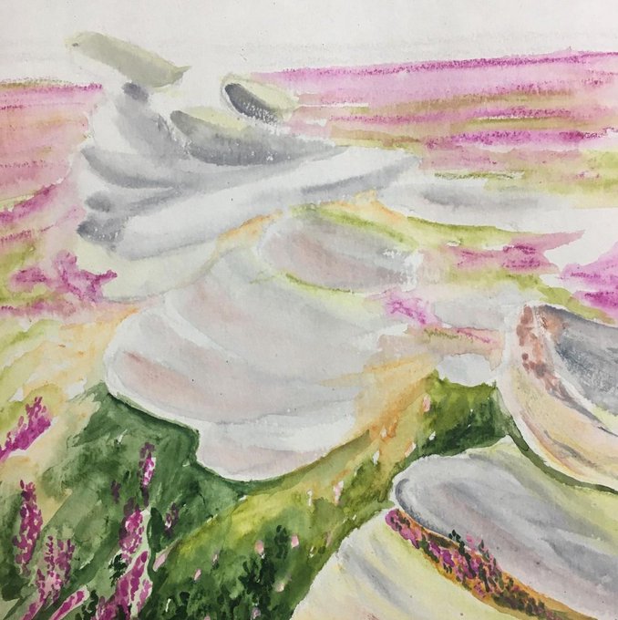 Finished. The Rocking Stones and Crow Stones on Howden Moors, Peak District, Derbyshire. Time to get back to drawing demons. #Landscape #Derbyshire #ArtistsOnTwitter #WatercolourPencils #PeakDistrict