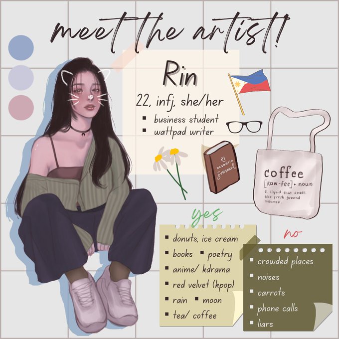 Get to know me! ✨ Hi! I'm looking for art moots and writer moots! You can call me Rin. Nice to meet you! 🖤🤍 What should I call you? #art #artph #artmoots #writermoots #illustration #meettheartist #digitalart #wattpad