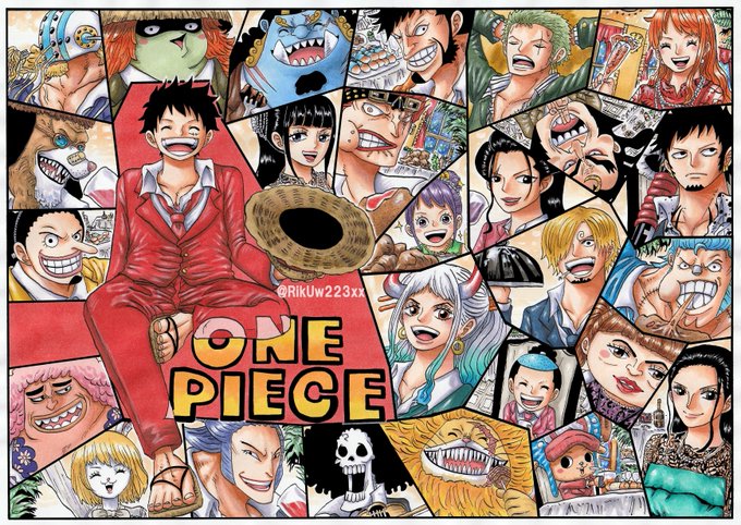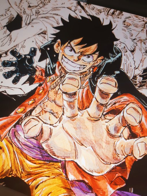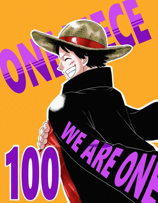 100巻掲載させてもらいました!!元絵も見てくださいまし!! 100巻ですよ?100巻!!ヤッホーい!! 一時絵を休んでたけど、もっといい絵を描けるようにこれからも頑張りまーす! #WeAreONE #ONEPIECE100