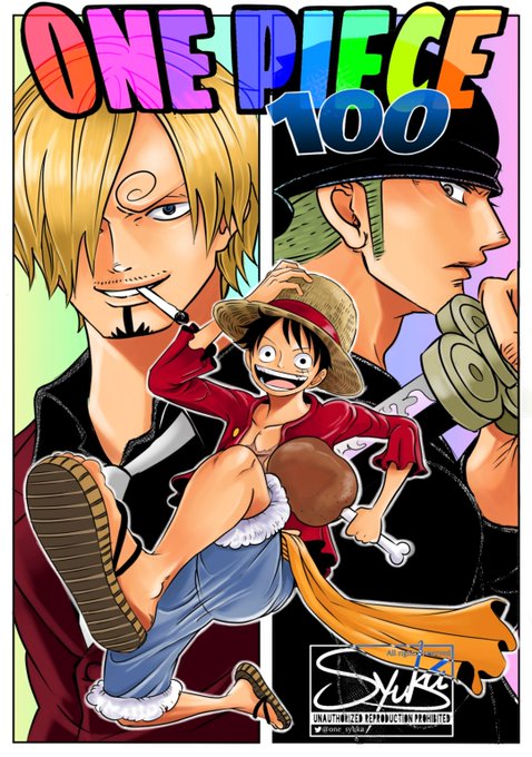 100巻掲載させてもらいました!!元絵も見てくださいまし!! 100巻ですよ?100巻!!ヤッホーい!! 一時絵を休んでたけど、もっといい絵を描けるようにこれからも頑張りまーす! #WeAreONE #ONEPIECE100