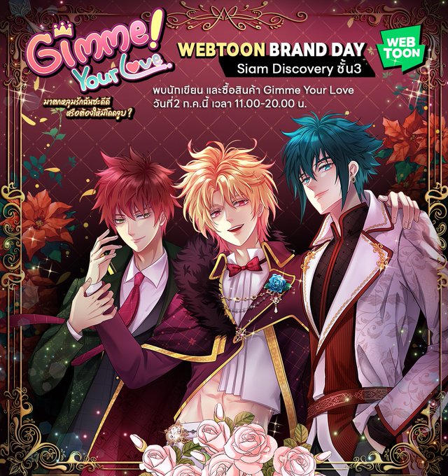 มาแล้วจ้า! สินค้าและกิจกรรมในงาน ⭐WEBTOON BRAND DAY ⭐ วันที่ 2 ก.ค. นี้ที่บูท 5 Siam Discovery ชั้น 3 เวลา 11.00-20.00 น. วันงานรบกวนพกกระเป๋าสำหรับใส่สินค้ามาด้วยนะคะ เจ๊ไม่มีถุงพลาสติกน้า #WebtoonBrandDay #GimmeYourLove #มาตกหลุมรักฉันซะดีดีหรือต้องให้มีโดดจูบ #WEBTOONTH