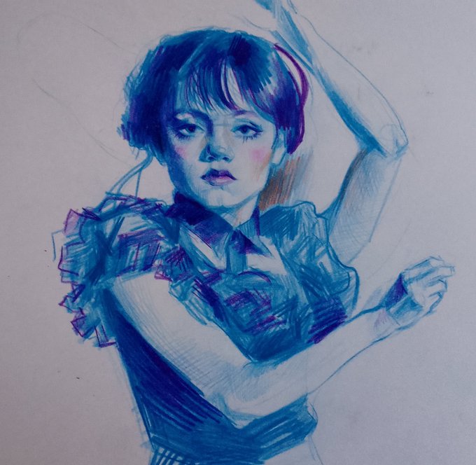 Haha Jenna Ortega's character is wonderful #artvsartist2022 #artvsartist #artist #artwork #artists #artmoots #ArtistOnTwitter #artistsupport #Wednesday #wednesdaynetflix #wednesdayadams #wednesdayaddams #WednesdaySeason2 #wednesdayfanart #wednesdaydance #sketch #sketches