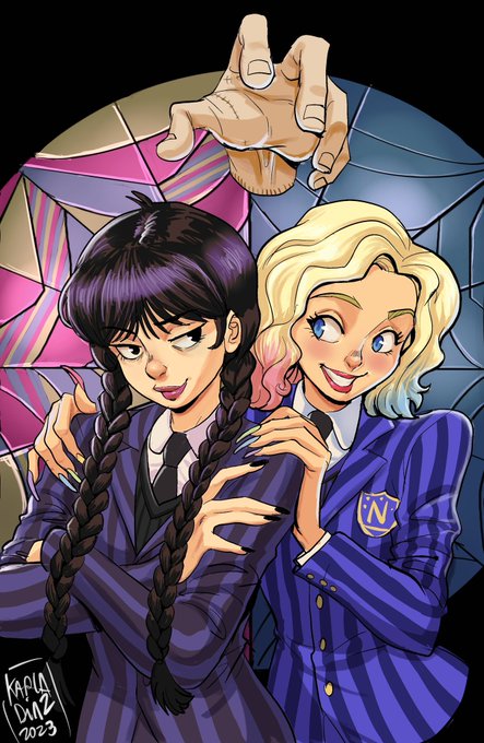 Posting a drawing of Wednesday on Wednesday... with her friend Enid c: Commission for @zimeemga #wednesdayaddams #Wednesday #wednesdayadams #Enidsinclair #enid #addamsfamily #commissionart #fanart