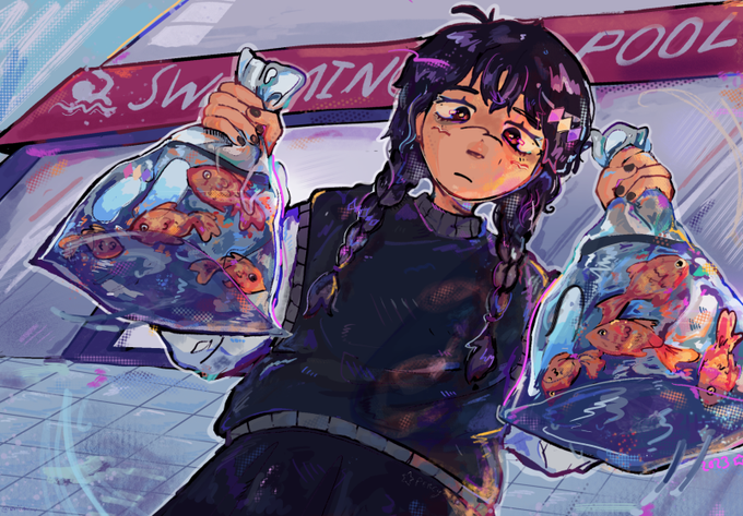 me when i throw piranhas in the swimming pool but im just a silly gal... a whimsical goofball.... #wednesdayaddams #wednesdayfanart