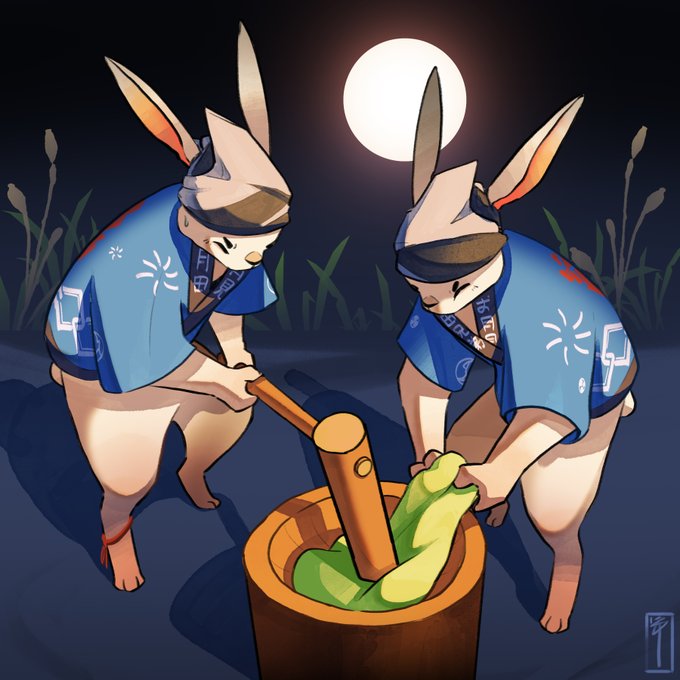 weretober 24/31 hare お月見の餅つき #artwork #weretober #weretober2021 #anthro #hare #charcterdesign #イラスト #創作 #キャラデザ #お月見