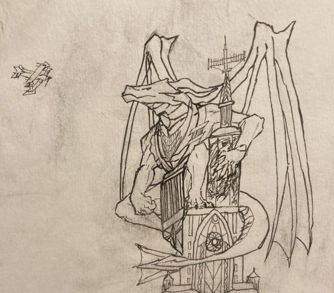 Now after two weeks,I finally have it done #inktober2021 & #weretober2021 day31 : risk, dragon “That pilot sure got some guts” #drawing
