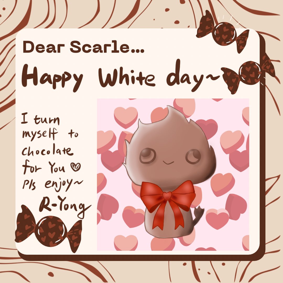 Dear #ScarleYonaguni , Happy White Day! I turn myself to chocolate for you❤️pls enjoy~ love, R-Yong~ 🍫#WhiteBullsForScarle #ScarleArt (3rd is transparent png)