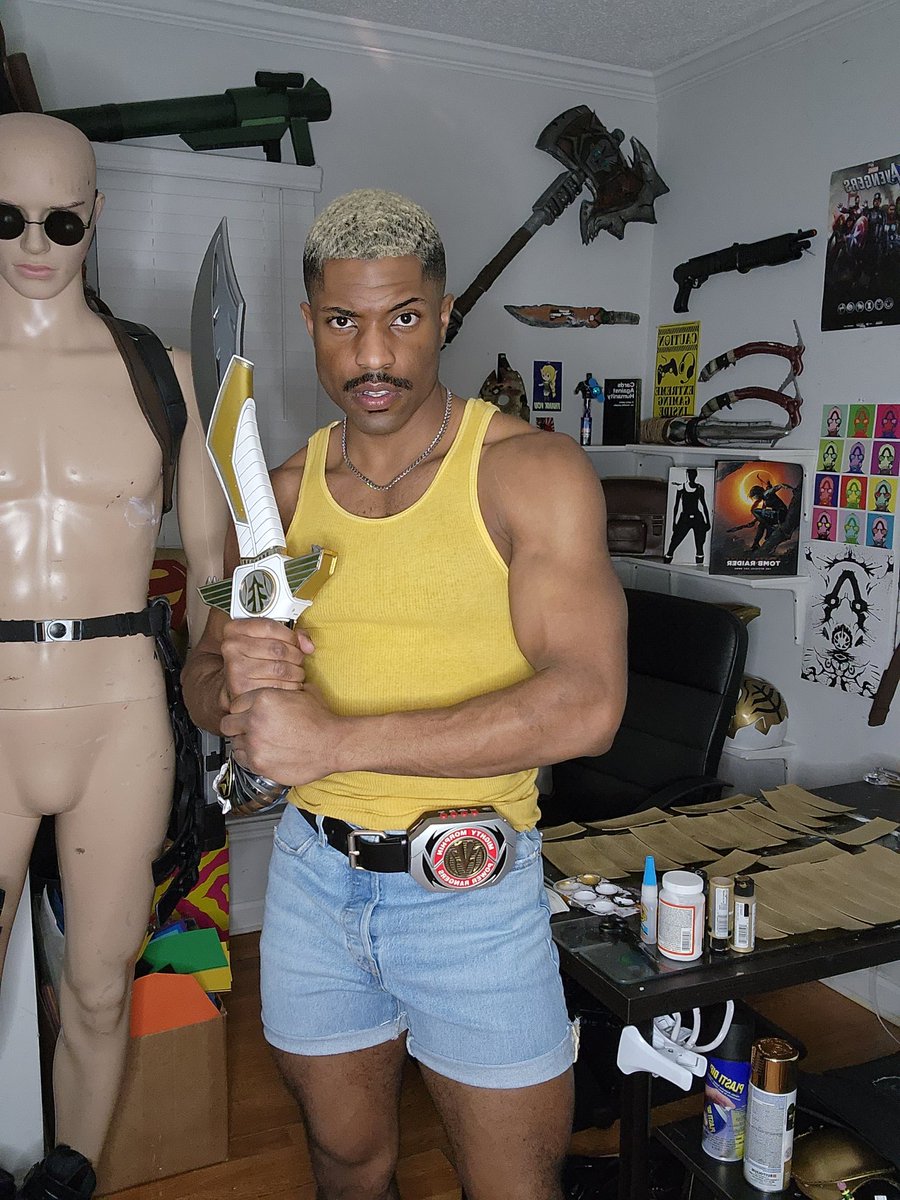 I'll be posting more of my custom "return of Tommy" cosplay on my IG this week. Gonna don the pink suit again with my EVA foam shield soon, too. I really dig these colors together. #PowerRangers #cosplay #whiteranger #mmpr #cosplayer #PowerRangerscosplay #saba #kibaranger