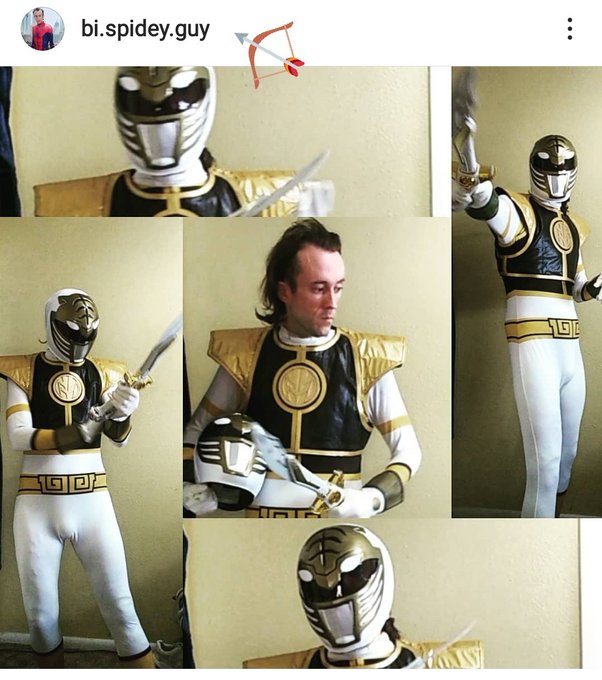 This is my brother's Shield over my original morphsuit. Tons of pics in this one on my IG (where the arrow points!) #PowerRangers #tommy #tommyoliver #whiteranger #powerangerscosplay #cosplay #cosplayer #cosplayersover40 #cosplayers #gaming