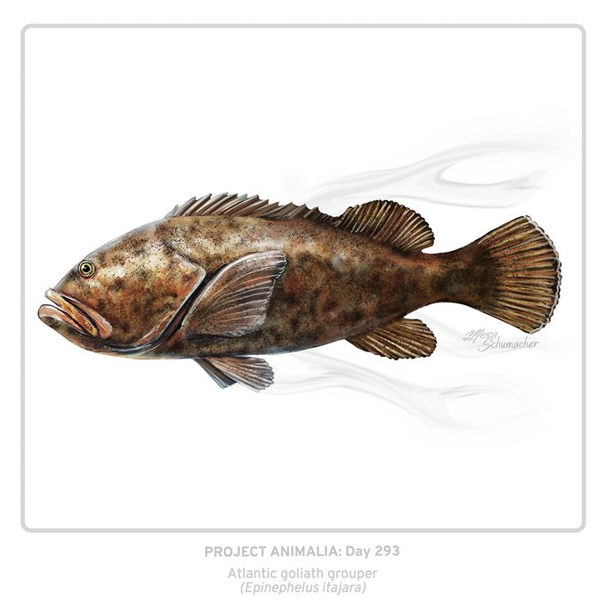 Not a lightweight - this fish can be up to 800 lbs and munch on fish and diminutive sharks. (Drawing a #sciart #illustration a day in 2021) Day 293: Atlantic goliath grouper (Epinephelus itajara) #wildlifeart #animalart #fishart #oceanart #wildlifewednesday