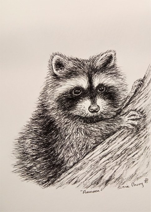 Here's a cute little raccoon I drew in pen recently - I love their beautiful eyes and clever little paws 🥰hope you like him 🦝❤️for #WildlifeWednesday #artshare #wildlife #WellbeingWednesday #drawings 🥰🎨