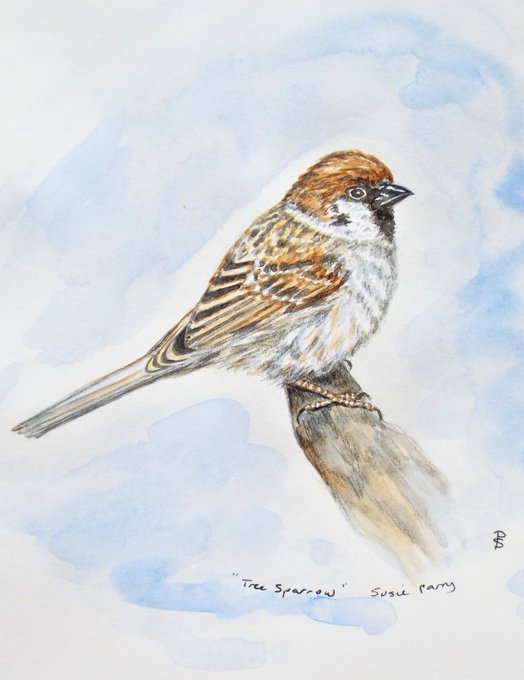 For #WildlifeWednesday here is a tree sparrow - I love the sparrows in our garden 🥰🐦#art #wednesdaythought #painting #wildlife #artshare #Wellbeing #birds #gardens #Peace 🥰🐦🦋🌻