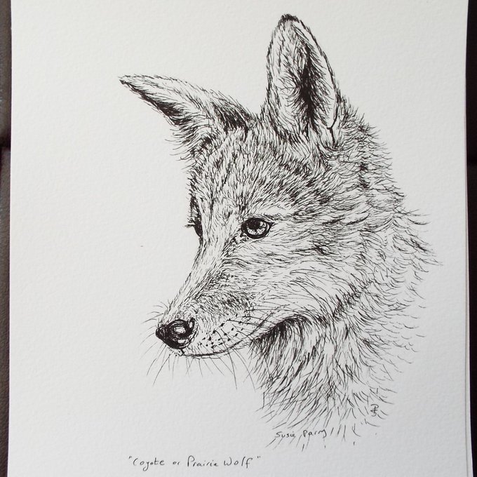For #WildlifeWednesday here's a Coyote or Prairie Wolf I drew in ink a few days ago, hope you like him 🥰🐺#artshare #ArtistOnTwitter #Wednesday #Wellbeing #drawing #wildlife 🥰🐺🎨