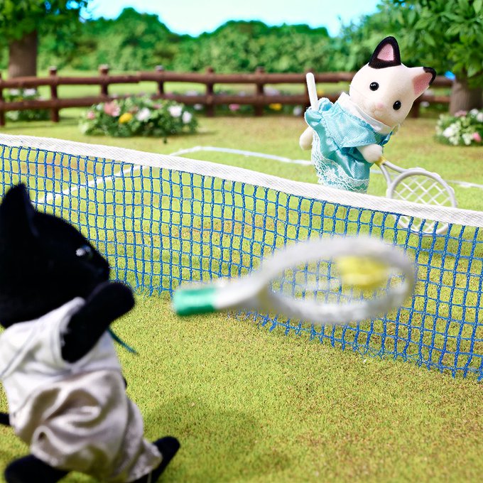 スマーッシュ!!! チャコールネコのリリーが華麗なスマッシュを決めました🎾 さぁ、どちらが勝つでしょうか? 楽しみですね! #シルバニアファミリー #シルバニア #テニス #スポーツ #ウィンブルドン #tennis #wimbledon