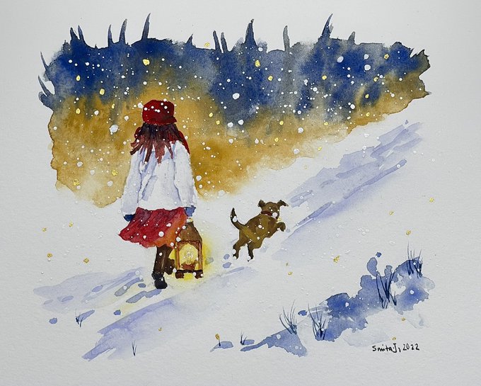 Here's Nora in her winter outfit, ready to feel the snow outside. ❄️🌨️ #winter #WinterWonderland #WinterIsComing #snow #art #myart #ArtistOnTwitter