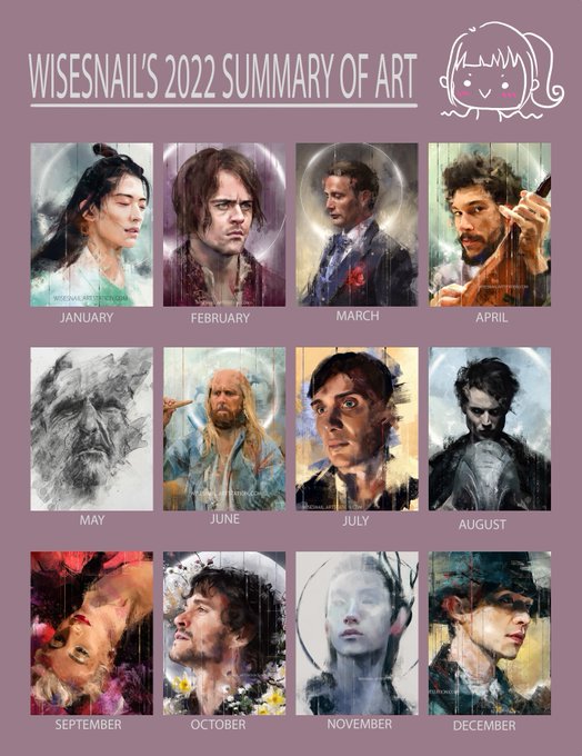 Another year, another #ArtSummary <: What can I say? Upwards and onwards! #ArtSummary2022 #Wisesnail #OFMD #TGCF #Hannibal #Goblin #CillianMurphy #TheSandman