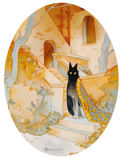 Wisptober Day 1 : Meeting "The last thing the young cat was expecting, when sneaking off to see the stars, was to have a strangely nostalgic meeting." And here we start!!:D I am a bit rusty and Kudos for those who know the inspiration for this one.;) #Wisptober #Watercolor