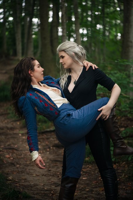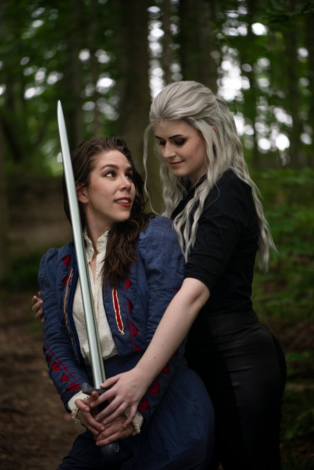 “So I'm not going to meet a tall dark stranger? I shall have to content myself with you, Geralt” Pc: @gabrielleeccard #thewitcher #yennefer #witchercosplay #Geralt #Witcher3 #cosplay