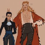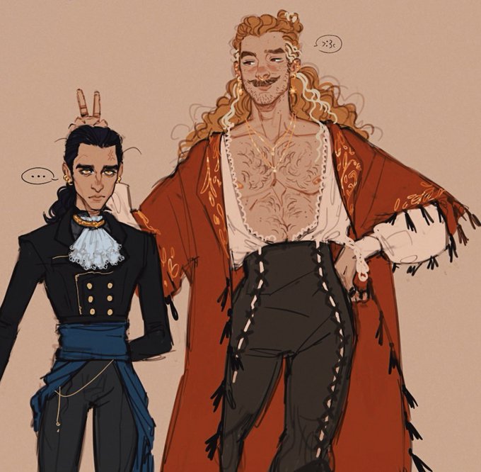 Terrible matching outfits for Kol and Dis (@faeyth_freedom ‘s OC) they were pretty much forced to wear by the soggy court… safe to say they were not impressed #witchlight #dnd #dndartist #dndart