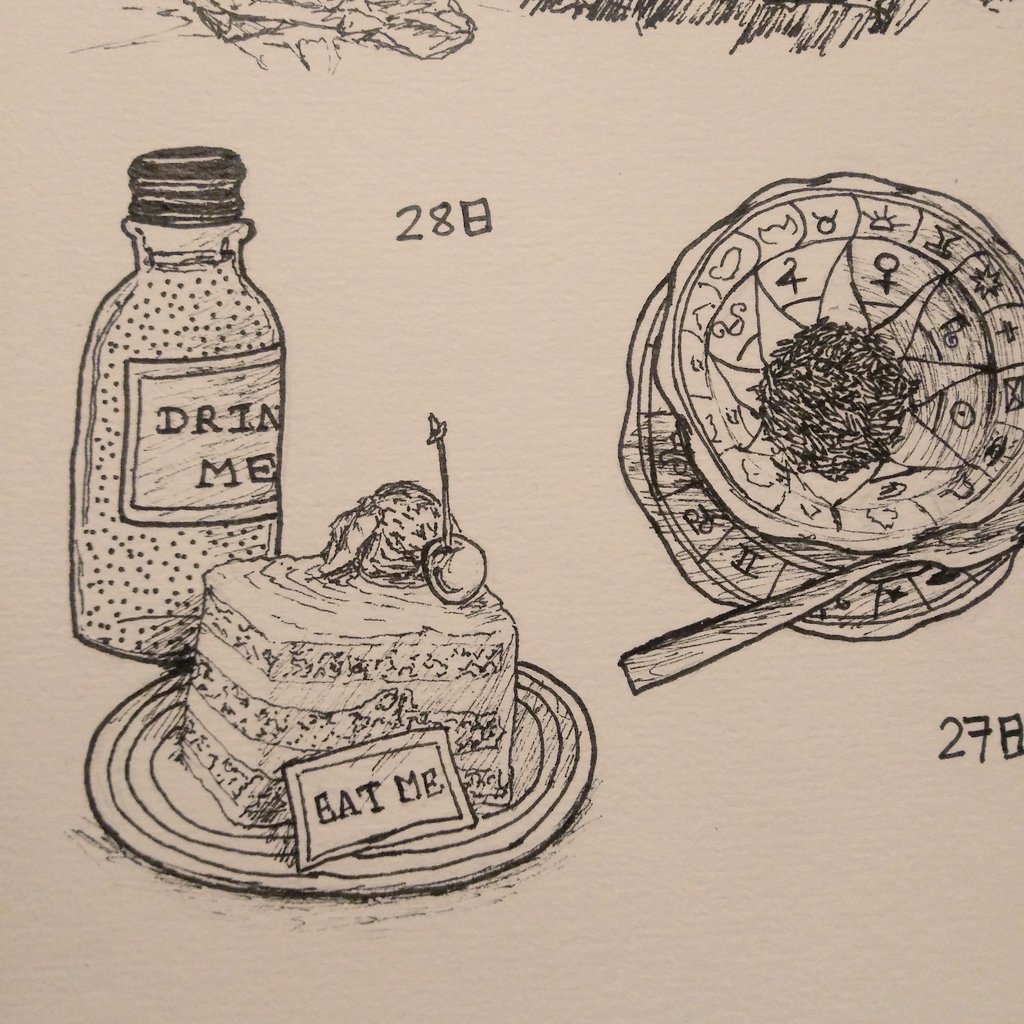 Days 27 and 28 of #inktober2021 - tea leaves, poison Alice in Wonderland reference hehe for those who might get it #WitchyCafeScribbles