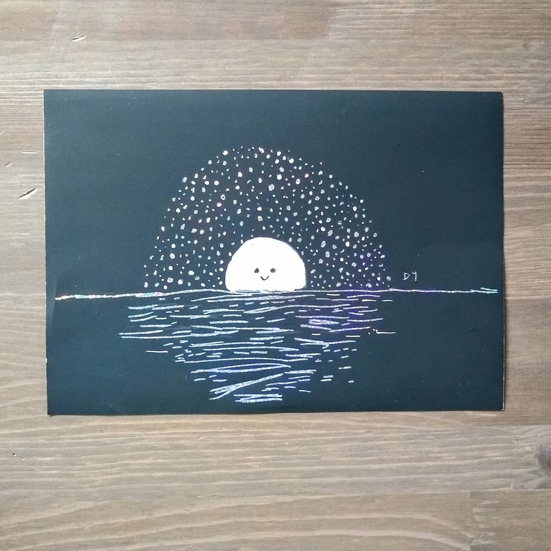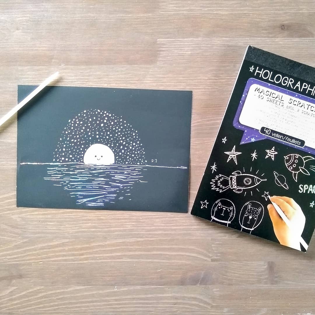 Inktober #frightfall20201 #7. Today's prompt is 'Moon'. I immediately thought of the song 'Silver moonlight' by Within Temptation. Not one, but two versions today: a digital one and handmade one I drew with my daughter's scratch pad. 😊 #Inktober @RetroSupplyCo #withintemptation