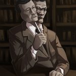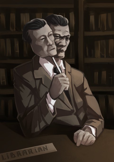 Day 24 Masquerade. Nathan Langley, night librarian. Prefers when you take a subscription. #vamptober #monthofdarknesss #inktober #wod #vamily #vtm #vampirethemasquerade #worldofdarkness #WoD_ink2022 #nosferatu