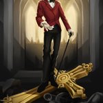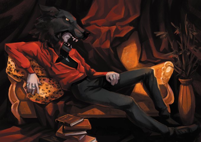 Day 22 Fashion Never Dies. Fashion is my profession! Mason Morway, Tremere. Posing for his clanmate in the head of a werewolf. #vamptober #monthofdarknesss #inktober #wod #vamily #vtm #vampirethemasquerade #worldofdarkness #WoD_ink2022 #tremere
