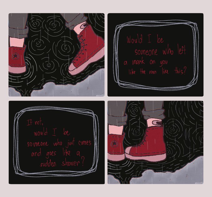“the rain makes its mark on my dirty shoes as if it’s letting me know its existence...” — rain (@BTS_twt) ✨ #WordsByBangtan #WBBApr #btsfanart