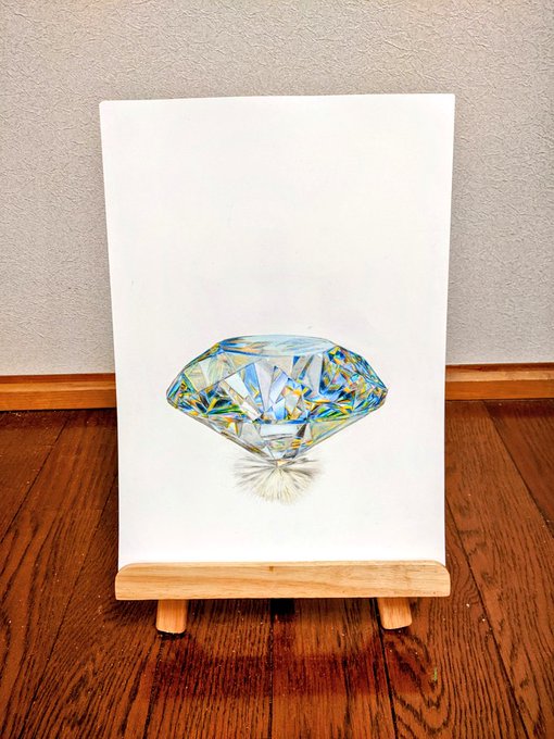 ようやくダイヤモンド💎完成しました! 色の変化が細かくて難しく、完成に一週間程掛かりましたが完成して嬉しいです😀 #絵 #イラスト #アナログ画 #イオフィエル #WorldA_RT #アトリエの系譜 #絵描きさんと繋がりたい #絵師さんと繋がりたい #宝石