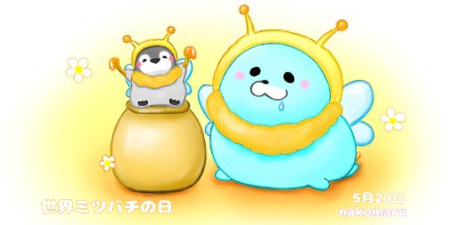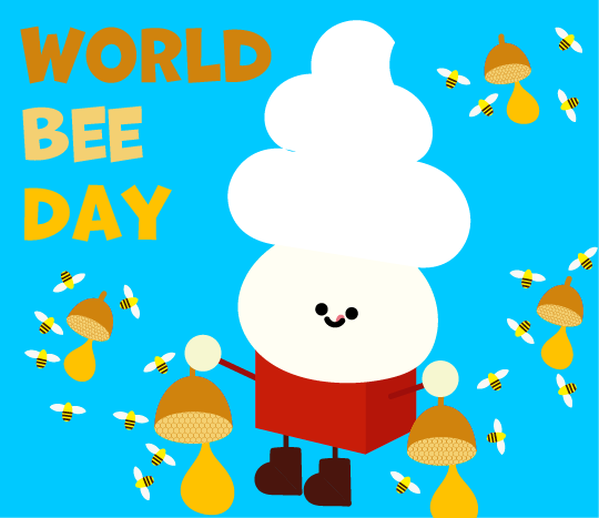 今日も美味しいハチミツをありがとう~!! Thank you for the delicious honey today. #今日は何の日 #世界ミツバチの日 #WorldBeeDay #イラスト #illustration #くるぴょ~ん