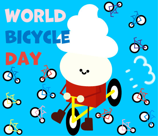いえ~~い!! びゅーーーん Bicycles are a space-saving and convenient vehicle because they do not require a large parking lot. #今日は何の日 #世界自転車デー #WorldBicycleDay #イラスト #illustration #くるぴょ~ん