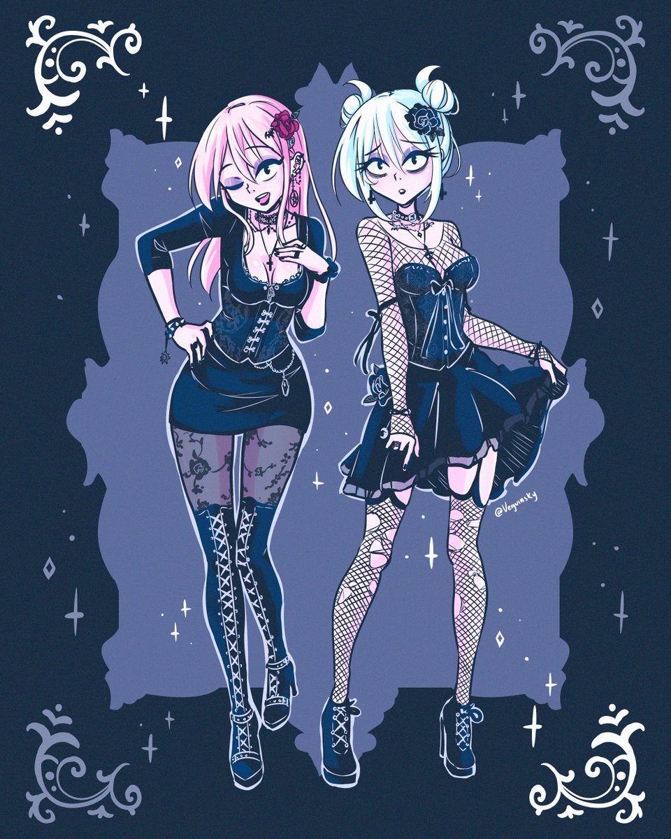 Today is #worldgothday 🖤 So Dina and María dress for the occasion, I really enjoy drawing all the details of the clothes. I hope you like it! I made an alternate version of lingerie for patreon ✨ #digitalart #gothicgirl #lanochedewalpurgis #webtoon #oc