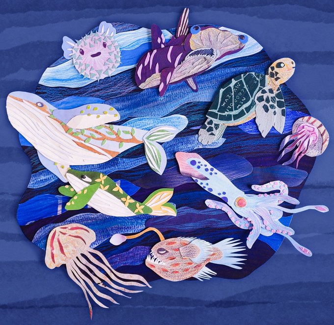 #WorldOceanDay2022 is just around the corner. I created some paper collage art focusing on #ocean #conservation 🌊 and today's theme is all about marine creatures. #SEA #Illustrator #illustration #kidlit #art #ArtistOnTwitter #animallovers #animal