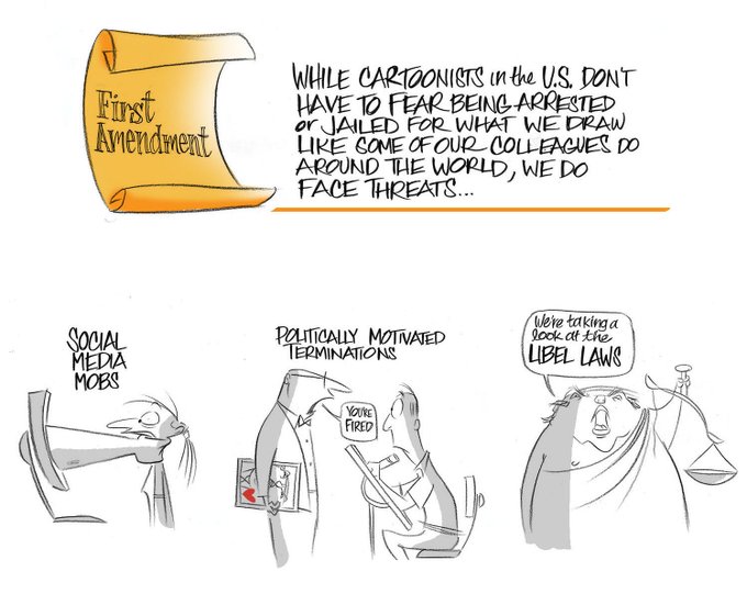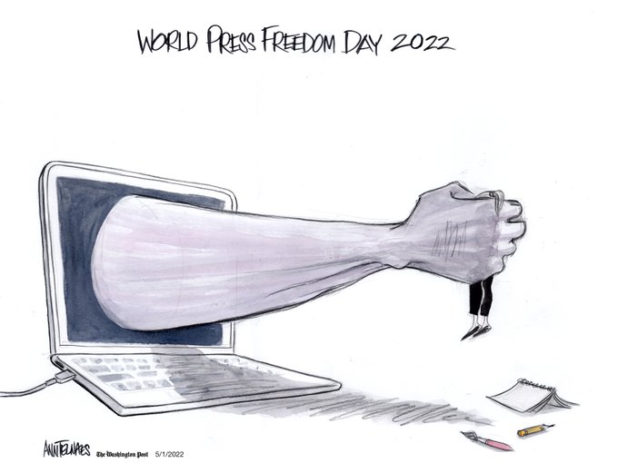 Opinion | #WorldPressFreedomDay Because editorial cartoons are created with satire, caricature and visual metaphors, editorial cartoonists are targeted by both the right and left. washingtonpost.com/opinions/2022/…