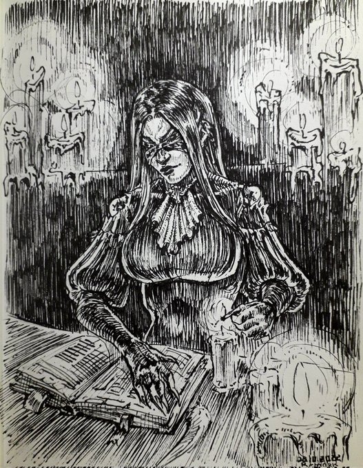 8. Спичка Вы спросите зачем женщине с завязанными глазами свечи? И как она вообще может читать? Но я не отвечу вам уйдя в закат п.с. просто промолчу про положение дел в этом инктобере #япытался #world_of_warcraft #WoW #undead #inktober #inktober2022