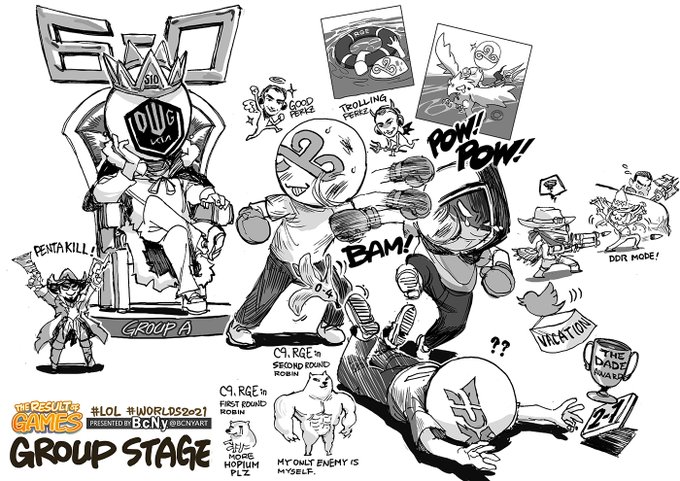 Four illustrations about the individual result of group stage in #Worlds2021 ! Can't wait to watch more games in the tournament. #theresultofgames