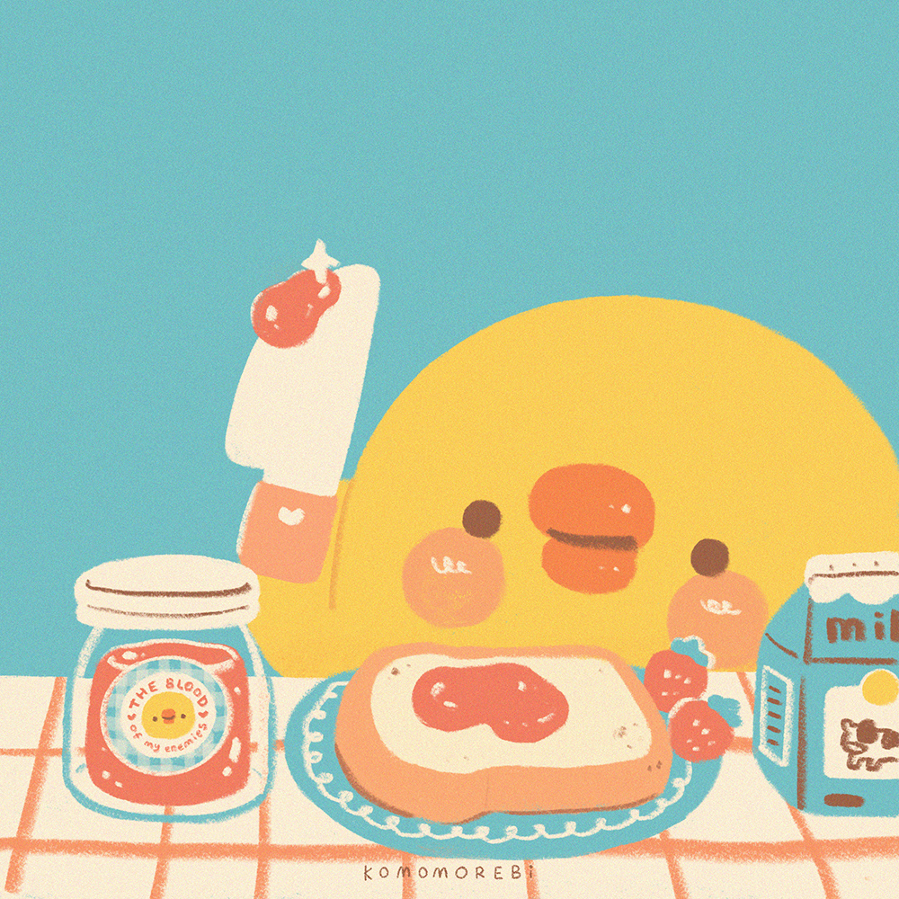 It’s just some strawberry jam…right? 🐥 🔪 🍓 Thank you @komomorebi & @XPPen for hosting!!! #procreatedrawing #dtiys #komomorebiDTIYS #drawthisinyourstyle #digitalart #illustration #childernsbookillustration #childernillustration #XPPendtiys #XPPen