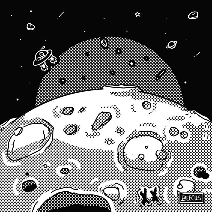 [ 2021 Inktober D-18 // Moon ] #inktober #inktoberday18 #inktober2021 #moon #space #stars #emptiness #float #XX #ink #blackandwhite #illustration #art #beecus