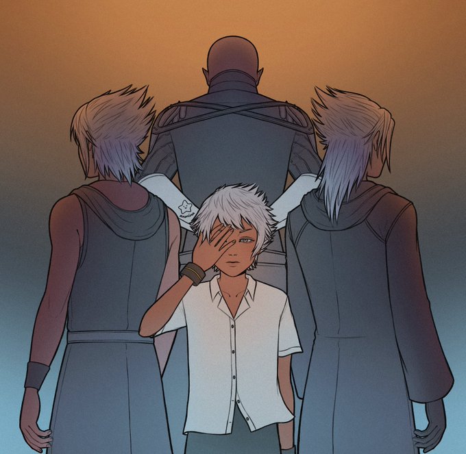 "SOLACE" The new holographic print.⚜️ Inspired by that scene from Dark Road ⭐️Pin set and holo print, will be available on Friday 20 (next week). I hope you like the new items and stay tuned!! #kingdomhearts #khdr #xehanort #eraqus #KH #fanart twitter.com/_princesselemm…